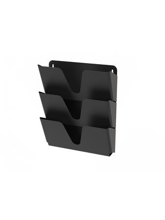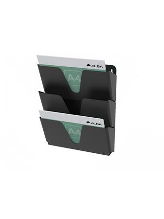 ALBA Prospektustartó, fém, fali, fekvő, A4, 3 rekesz, ALBA, fekete