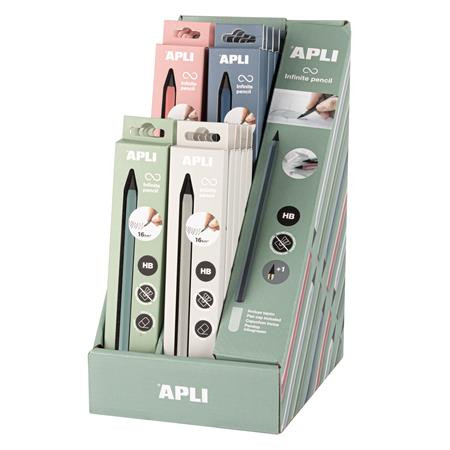 APLI Töltőceruza display, HB, hatszögletű, csereheggyel, APLI "Infinite", vegyes színek