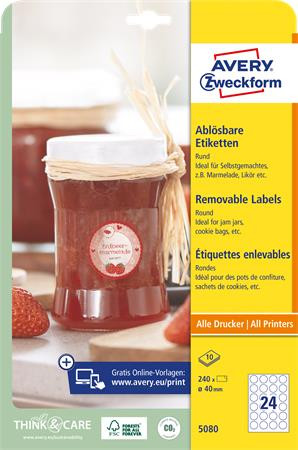 AVERY ZWECKFORM Etikett, 40 mm, kör, eltávolítható, AVERY ZWECKFORM, 240 etikett/csomag