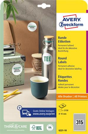 AVERY ZWECKFORM Etikett, univerzális, 10 mm, kör, AVERY ZWECKFORM, 3150 etikett/csomag