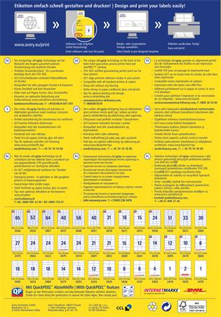 Pontos adagolás és garantáltan elakadásmentes nyomtatás az innovatív ultragrip® technológiának köszönhetően. -ideális tartalomcímkéknek, pl. költöztetődobozokra, tárolókra és a raktározásban -szín: fehér -méret: 210x297 mm -forma: négyszöletes -anyag: környezetbarát, FSC® tanúsítvánnyal rendelkező papír, fenntarthatóan kezelt erdőkből -alkalmas minden szabványos lézer- és tintasugaras nyomtatóhoz -problémamentes futás a lézernyomtatókon, a TÜV SÜD igazolásával -QCT biztonsági lapszél megakadályozza, hogy a nyomtatóba ragasztó-maradvány kerülhessen -extra erős tapadás: a címkék meggyőző erővel tapadnak papírra, kartonra, üvegre és műanyagra egyaránt -ingyenes szoftverünkért és sablonjainkért látogasson el a https://www.avery.hu/szoftver/avery-design-print weboldalra vagy használja a Microsoft® Office csomagokba beépített sablonokat Gyártó/első EU forgalmazó elérhetősége: Best Label Kft. 8184 Balatonfűzfő hrsz.: 1498/321. info@bestlabel.hu www.bestlabel.hu