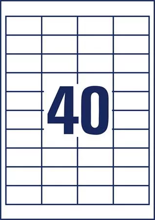 Tökéletes pl. reklámanyagok aktualizálására, vagy csomagcímkék nyomtatásához -öntapadó -forma: négyzetes -méret: 48,5x25,4 mm -gyártás során kevesebb a kibocsátás, és a gyártási hulladékot teljes mértékben újrahasznosítják -könnyen leválasztható és használható az egyedi QuickPEEL technológiának köszönhetően -garantált elakadásmentes nyomtatás minden szabványos lézernyomtatón -problémamentes nyomtatást a TÜV SÜD garantálja -tervezze meg és nyomtassa ki címkéit az ingyenes Avery Zweckform sablonokkal a Design & Print online tervezőben a www.AVERY ZWECKFORM.eu/print webhelyen, vagy a Microsoft® Office csomagba integrált alapvető sablonokkal -100%-ban klórmentesen fehérített -vízbázisú környezetbarát ragasztó Gyártó/első EU forgalmazó elérhetősége: Best Label Kft. 8184 Balatonfűzfő hrsz.: 1498/321. info@bestlabel.hu www.bestlabel.hu