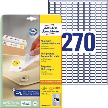 AVERY ZWECKFORM Etikett, univerzális, eltávolítható, 17,8x10 mm, AVERY ZWECKFORM, 8100 etikett/csomag