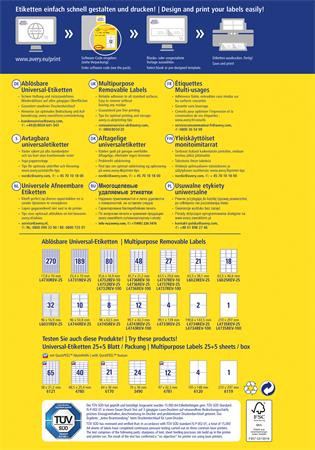 Tűéles nyomtatási kép elmosódás nélkül, a kiváló toner- és tintatapadásnak köszönhetően. -öntapadó -visszaszedhető -méret: 17,8x10 mm -ideális ideiglenes vagy gyakran változó címkézéshez -megbízható tapadás -ragasztómaradvány nélkül eltávolíthatóak a legtöbb felületről -problémamentes nyomtatás a lézernyomtatók esetén a TÜV SÜD által bevizsgált és tanúsított -környezetbarát, FSC® minősített és klórmentes eljárással fehérített -tervezze meg és nyomtassa ki címkéit gyorsan és egyszerűen - ingyenes szoftverünkért és sablonjainkért látogasson el a www.avery.hu/szoftver weboldalra vagy használja a Microsoft® Office csomagokba beépített sablonjainkat -optimalizált minőség tintasugaras, lézer és színes lézer nyomtatókhoz, fénymásolókhoz Gyártó/első EU forgalmazó elérhetősége: Best Label Kft. 8184 Balatonfűzfő hrsz.: 1498/321. info@bestlabel.hu www.bestlabel.hu