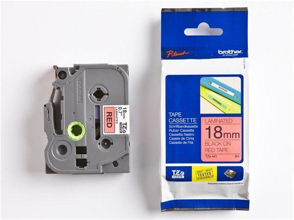 BROTHER Feliratozógép szalag, 18 mm x 8 m, BROTHER, "TZe-441" piros-fekete