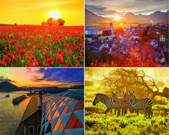 -naptár rész: magyar, angol, német nyelven, magyar  ünnepek  és névnapokkal, napkelte, napnyugta és holdállás  feltüntetésével