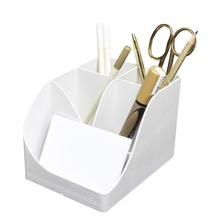 Letisztult skandináv életérzést árasztó asztali rendező! -5 rekeszes -4 egyforma méretű rekesz az olló és írószerek részére -1 rekesz a kissebb tárgyakhoz, gémkapocs, rajzszög, rövidebb kábelek vagy akár egy mobiltelefon -anyag: PP -méret: 160 x 120 x 110 mm (szé x ma x mé) -garancia: 25 év -Blue Angel tanúsítvánnyal rendelkező termék