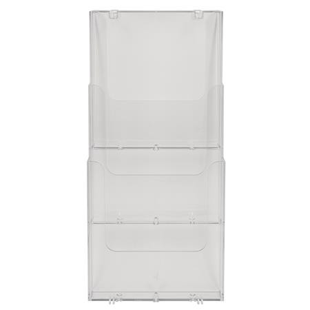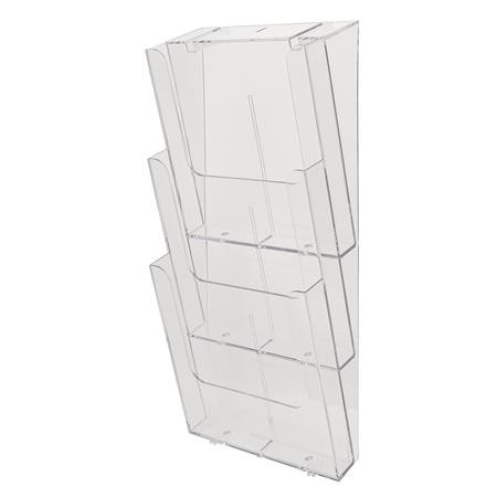 Fali prospektustartó A4-es méretű dokumentumokhoz. -kampóval könnyen rögzíthető -ideális információs anyagokhoz, katalógusok kihelyezésére -műanyag -álló A4-es dokumentumokhoz -áttetsző szürke színben -3 rekeszes -méret: 504 x 175 x 238 mm (szé x ma x ho) -garancia: 25 év