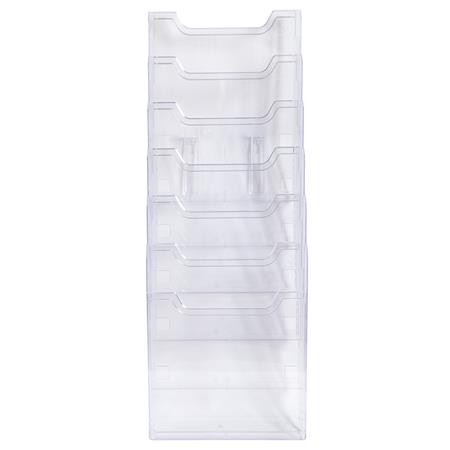 Fali prospektustartó A4-es méretű dokumentumokhoz. -kampóval könnyen rögzíthető -ideális információs anyagokhoz, katalógusok kihelyezésére -műanyag -álló A4-es dokumentumokhoz -áttetsző -6 rekeszes -méret: 155 x 239 x 665 mm (szé x ma x ho) -garancia: 25 év