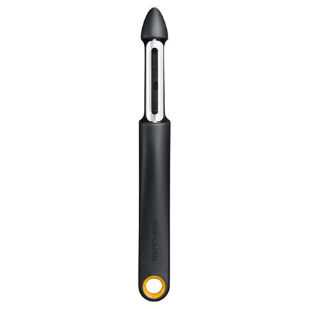 A sima élű, forgó rozsdamentes acél penge automatikusan követi az alapanyag formáját, így különösen hatékony és kíméletes hámozást tesz lehetővé minimális erőkifejtéssel.