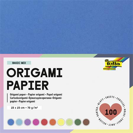 FOLIA Origami papír, 15x15 cm, 70 g, 100 lap, FOLIA, vegyes színek