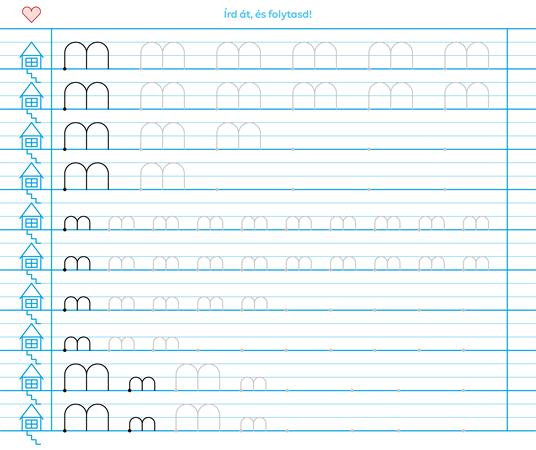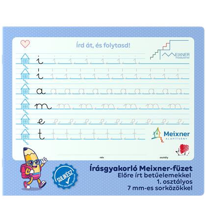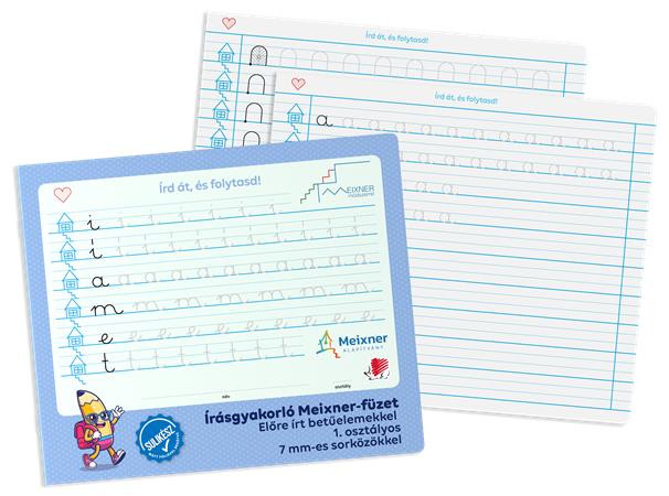 Írás gyakorló füzet az 1. osztályosok számára, amely a Meixner Alapítvány együttműködésével és ajánlásával jött létre. Speciális vonalazású és kialakítású füzet alkalmas a Meixner-féle írás tanulás elsajátítására és gyakorlására. -a házikó megkönnyíti a vonalközben való tájékozódást -a szívecske a balról jobbra haladást -a hármas vonalköz – 7 mm-es – vonalközök megkönnyíti a vonalközben való tájékozódást -méretét a kisgyermekek testarányaihoz igazítottuk -előre írt írásminták -32 lapos -fekvő formátumú -speciális méretű: 245x295 mm -kerekítettek sarkok -matt fólia borító Gyártó/első EU forgalmazó elérhetősége: ICO ZRT 2013 Pomáz, ICO út 5.; EU post@ico.eu www.ico.eu