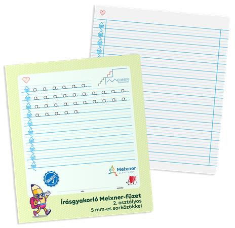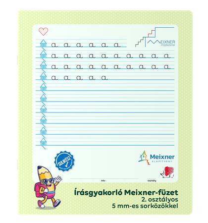 Írás gyakorló füzet a 2. osztályosok számára, amely a Meixner Alapítvány együttműködésével és ajánlásával jött létre. Speciális vonalazású és kialakítású füzet alkalmas a Meixner-féle írás tanulás elsajátítására és gyakorlására. -a házikó megkönnyíti a vonalközben való tájékozódást -a szívecske a balról jobbra haladást -a hármas vonalköz – 5 mm-es – vonalközök megkönnyíti a vonalközben való tájékozódást -méretét a kisgyermekek testarányaihoz igazítottuk -32 lapos -álló formátumú -speciális méretű: 295x245 mm -kerekítettek sarkok -matt fólia borító Gyártó/első EU forgalmazó elérhetősége: ICO ZRT 2013 Pomáz, ICO út 5.; EU post@ico.eu www.ico.eu