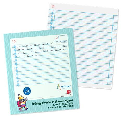Írás gyakorló füzet a 3. és 4. osztályosok számára, amely a Meixner Alapítvány együttműködésével és ajánlásával jött létre. Speciális vonalazású és kialakítású füzet alkalmas a Meixner-féle írás tanulás elsajátítására és gyakorlására. -a házikó megkönnyíti a vonalközben való tájékozódást -a szívecske a balról jobbra haladást -a hármas vonalköz – 4 mm-es – vonalközök megkönnyíti a vonalközben való tájékozódást -méretét a kisgyermekek testarányaihoz igazítottuk -32 lapos -álló formátumú -speciális méretű: 295x245 mm -kerekítettek sarkok -matt fólia borító Gyártó/első EU forgalmazó elérhetősége: ICO ZRT 2013 Pomáz, ICO út 5.; EU post@ico.eu www.ico.eu