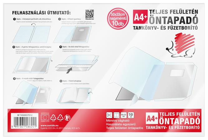 Öntapadós füzetborító amely egyszerűen felhelyezhető – csak húzd le a védőfóliát, vágd az adott füzet méretére, és simítsd el!
