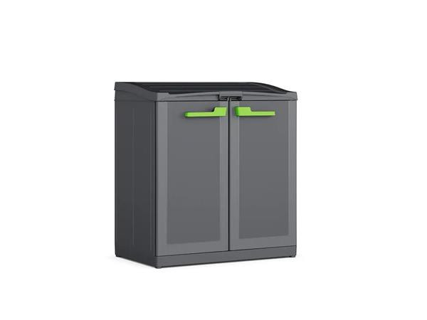 A KETER Moby szelektív hulladékgyűjtő rendszer segít környezettudatosabbá tenni a mindennapokat. Modern dizájnja esztétikusan illeszkedik a kültéri környezetbe. - három, legfeljebb 110 literes zsák befogadására alkalmas - anyaga polipropilén - könnyű tisztán tartani - egyszerűen összeszerelhető - egy nagy felső fedéllel rendelkezik push-to-open nyitási rendszerrel, amely lehetővé teszi a fedél egyetlen mozdulattal történő kinyitását - elől dupla ajtó kényelmes fogantyúkkal - méretek: 55x90x100 cm (szélesség x mélység x magasság) - súly: 13,61 kg - az újrahasznosító zsákok nem része a csomagnak