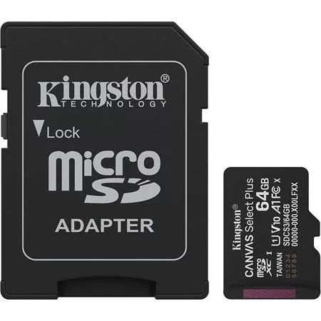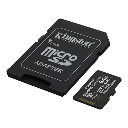 KINGSTON Memóriakártya, microSDXC, 64GB, C10/UHS-I/U1/V10/A1, Gen3, adapter, KINGSTON "Canvas Select Plus"