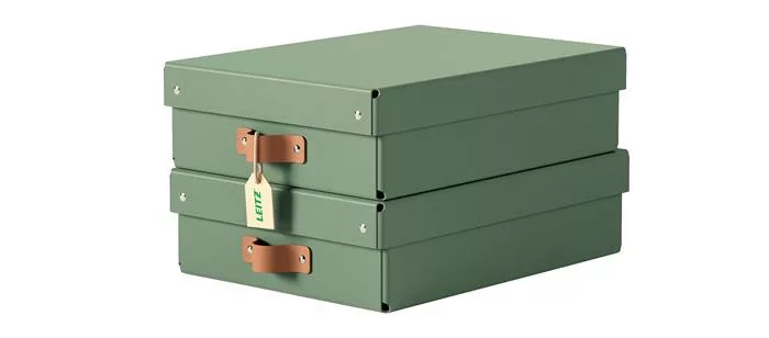 LEITZ Tárolódoboz, M méret, alacsony, LEITZ "Puro", zsályazöld
