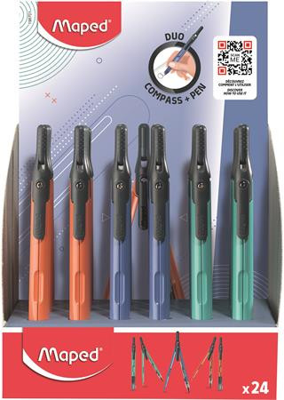 MAPED Körző display, heggyel, 2in1, ceruzává alakítható, MAPED „Compass Pen”, vegyes színek