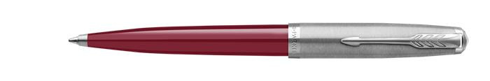 PARKER Golyóstoll, 0,7 mm rotációs, ezüst színű klip, piros tolltest, PARKER "Royal 51 Core", fekete