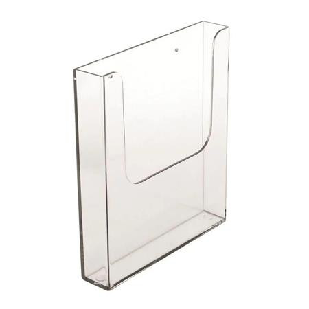 Az A5 méretű fali prospektustartó praktikus és helytakarékos megoldás szóróanyagok és katalógusok kihelyezésére forgalmas helyeken.