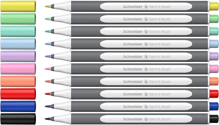 SCHNEIDER Ecsetirón készlet, hajlékony heggyel, SCHNEIDER "Paint-It 070", 10 különböző szín