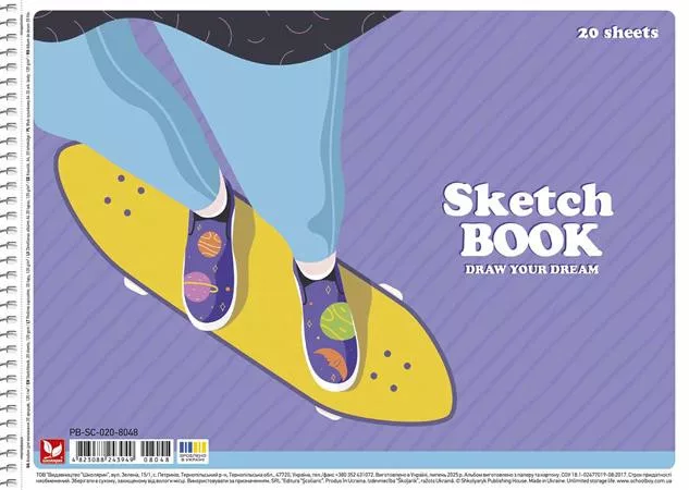 SHKOLYARYK Vázlatfüzet, spirál, A4, 120 g, 20 lap, SHKOLYARYK "Draw your dream", vegyes