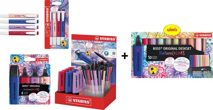 Ajándék: 5 db TST701035 Szövegkiemelő készlet, 2-5 mm, STABILO 'BOSS original NatureCOLORS Wildflowers', 10 különböző szín
