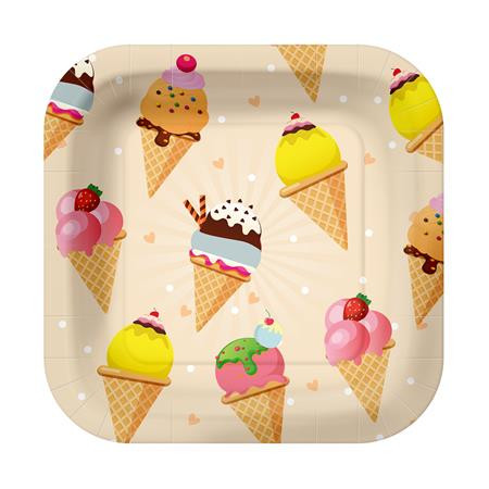 Tányér, papír, 23 cm, fagyi minta