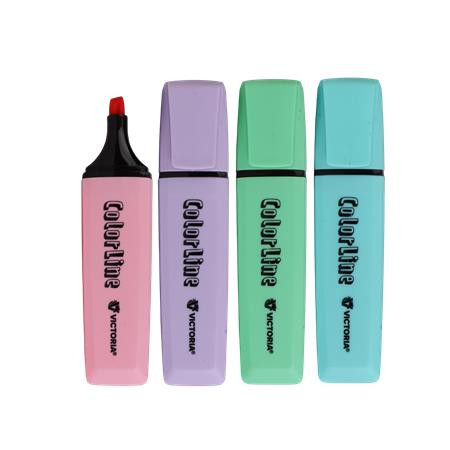 VICTORIA OFFICE Szövegkiemelő készlet, 1-5 mm, VICTORIA OFFICE, "ColorLine", 4 különböző pasztell szín