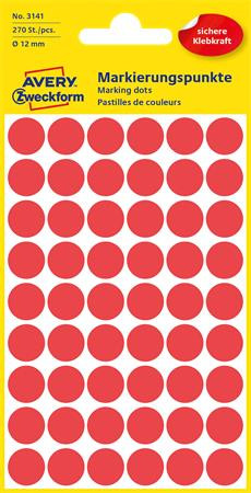 AVERY ZWECKFORM Etikett, 12 mm, kör, AVERY ZWECKFORM, piros, 270 etikett/csomag
