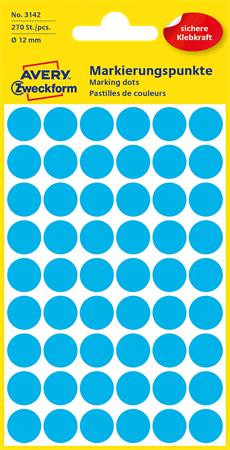 AVERY ZWECKFORM Etikett, 12 mm, kör, AVERY ZWECKFORM, kék, 270 etikett/csomag