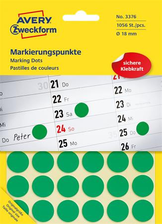 AVERY ZWECKFORM Etikett, 18 mm, kör, AVERY ZWECKFORM, zöld, 1056 etikett/csomag