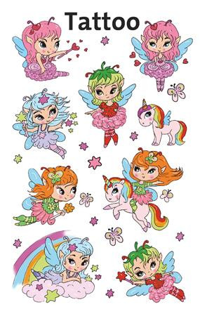 AVERY ZWECKFORM Matrica, tetoválás, 1 ív, 76x120 mm, AVERY ZWECKFORM, "Z-Design No.56768", tündérlányok és unikornisok