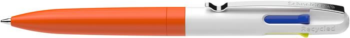 SCHNEIDER Golyóstoll, 0,5 mm, nyomógombos, négyszínű, SCHNEIDER "Take 4 Neon", narancs-fehér