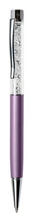 ART CRYSTELLA Golyóstoll, orgonalila, felül fehér SWAROVSKI® kristályokkal töltve, 14 cm, ART CRYSTELLA®